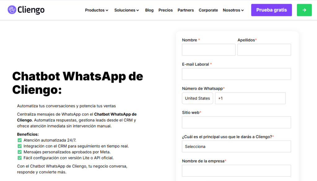 Cliengo es un CRM que ofrece un chatbot para WhatsApp enfocado en capturar, filtrar y asignar leads desde el primer mensaje. Funciona bien cuando tienes alto volumen de consultas y necesitas decidir rápido quién vale la pena atender y quién no.