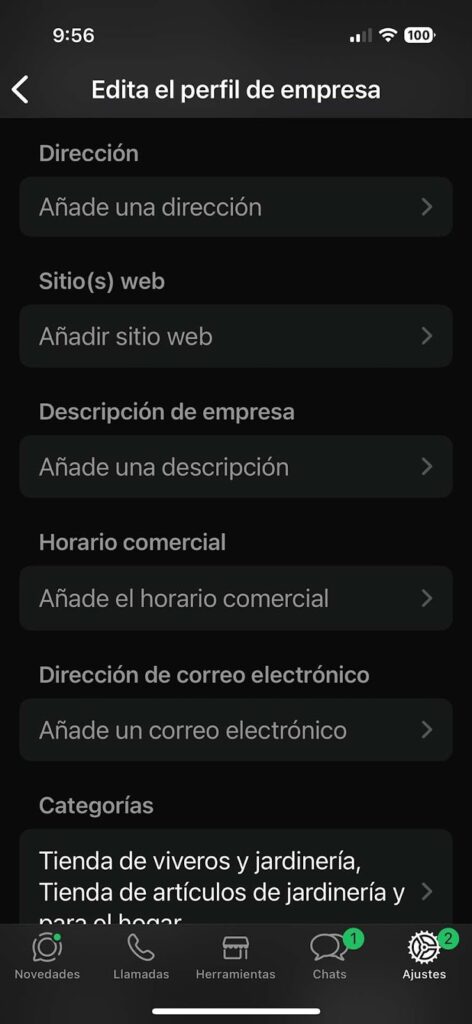 Con esta función puedes mostrar datos clave de tu negocio como nombre comercial, descripción breve, horario de atención y enlaces a tu web o redes sociales.