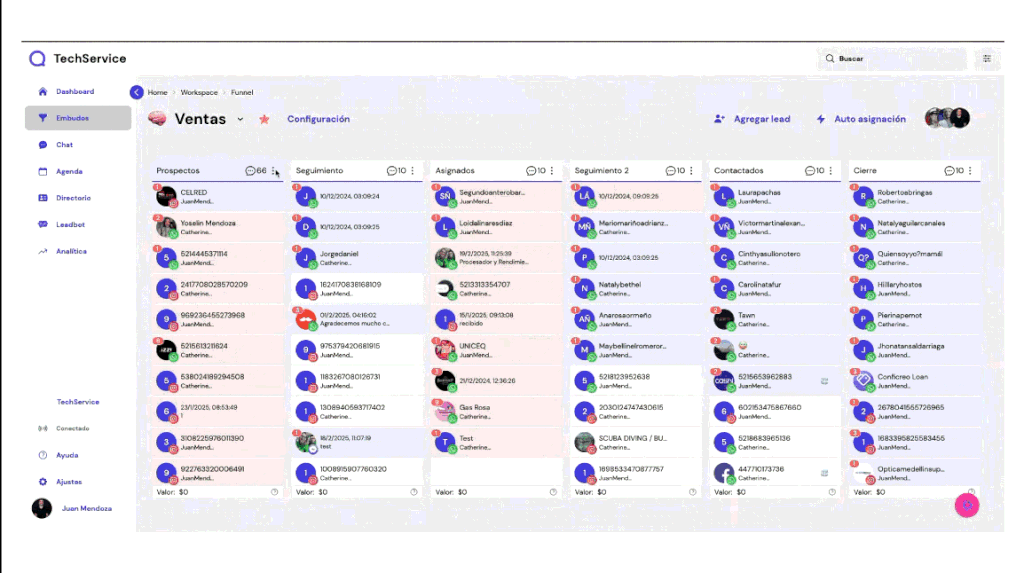 A veces el problema no es que el cliente no quiera volver, sino que simplemente se quedó esperando respuesta. En Leadsales puedes ver desde tu embudo quiénes llevan días sin recibir atención, según el tiempo de inactividad que especifiques.