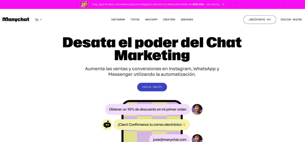 Su mayor ventaja es que combina funciones de chatbot con opciones de marketing, lo que la hace perfecta para quienes buscan vender y al mismo tiempo fidelizar clientes.
