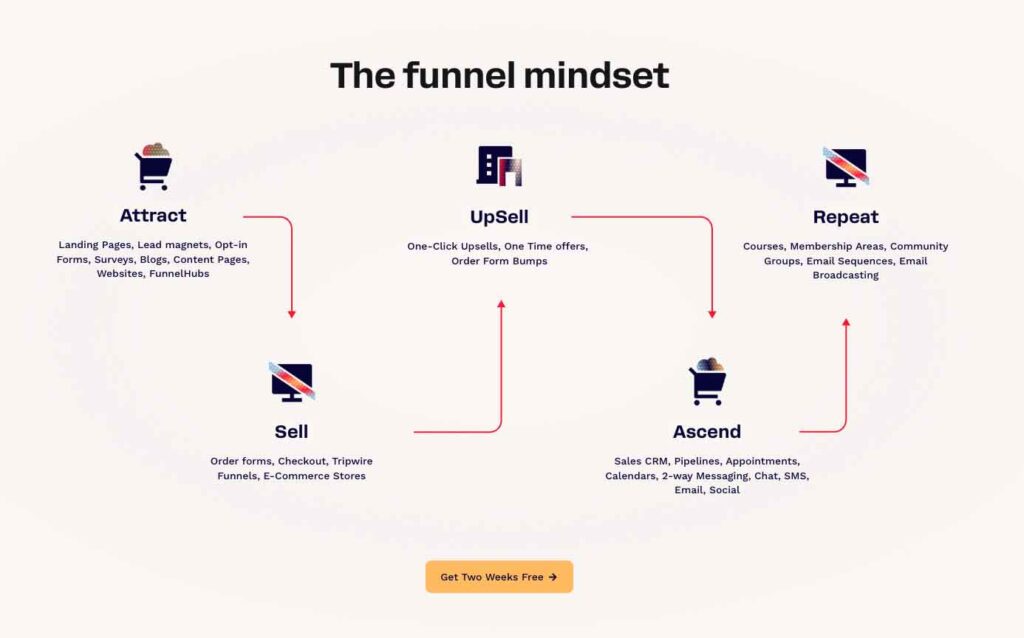 ClickFunnels es una de las plataformas más conocidas para construir embudos de ventas sin necesidad de saber programar.
