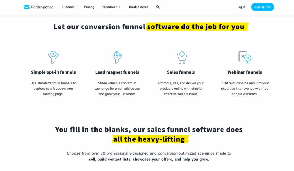 GetResponse tiene un enfoque fuerte en el email marketing, pero también ofrece herramientas para crear embudos de ventas de manera fácil y efectiva. Funciona bien para emprendedores digitales, creadores de contenido, tiendas en línea y cualquier negocio que quiera optimizar su proceso de ventas.