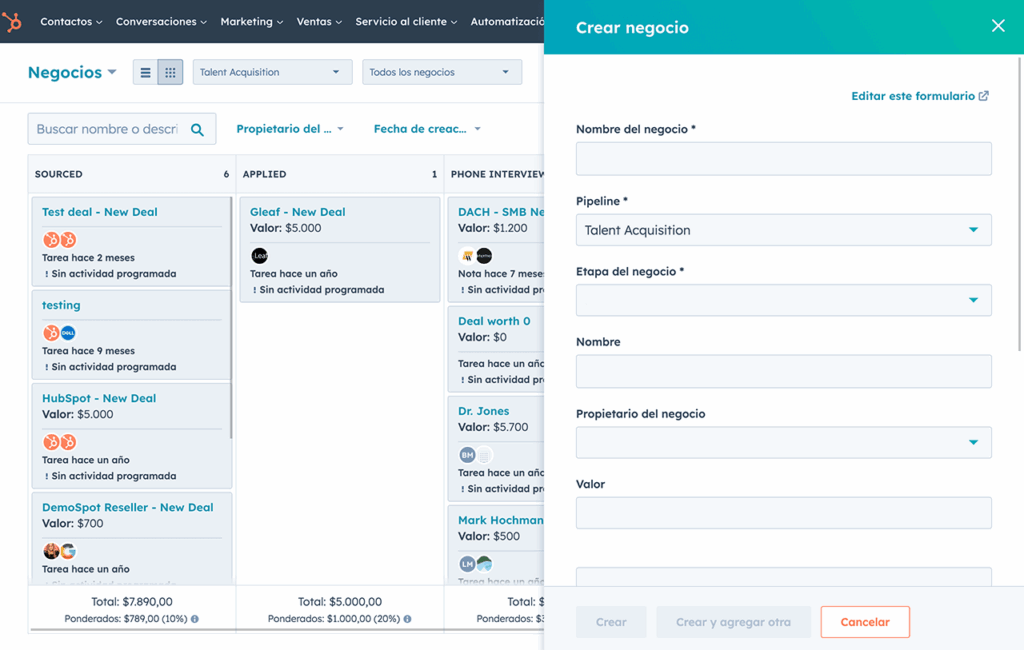 - Multiples embudos activos para distintos procesos, equipos o tipos de clientes.