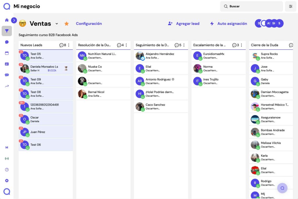 - Asignación manual por etapas, así puedes mover fácilmente cada conversación de una etapa a otra según su avance.