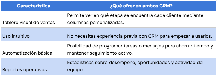 Aunque están pensados para contextos distintos, ambos CRM comparten funciones que resultan útiles para cualquier equipo de ventas.