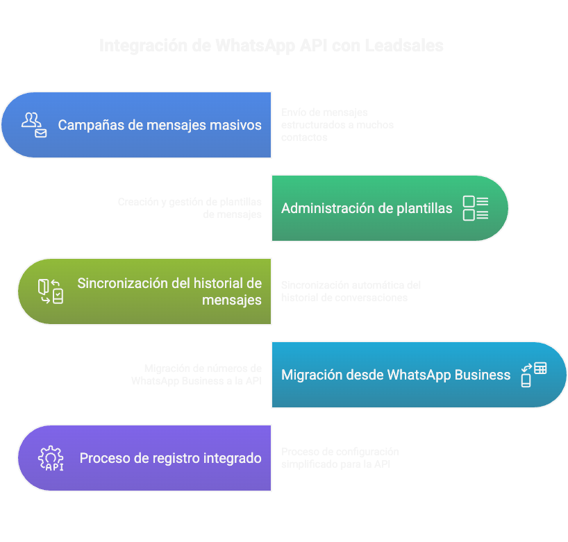 Si nunca has usado WhatsApp Business API, puedes empezar directamente desde Leadsales sin necesidad de configuraciones complejas ni conocimientos técnicos. Nuestra plataforma te guía paso a paso para: