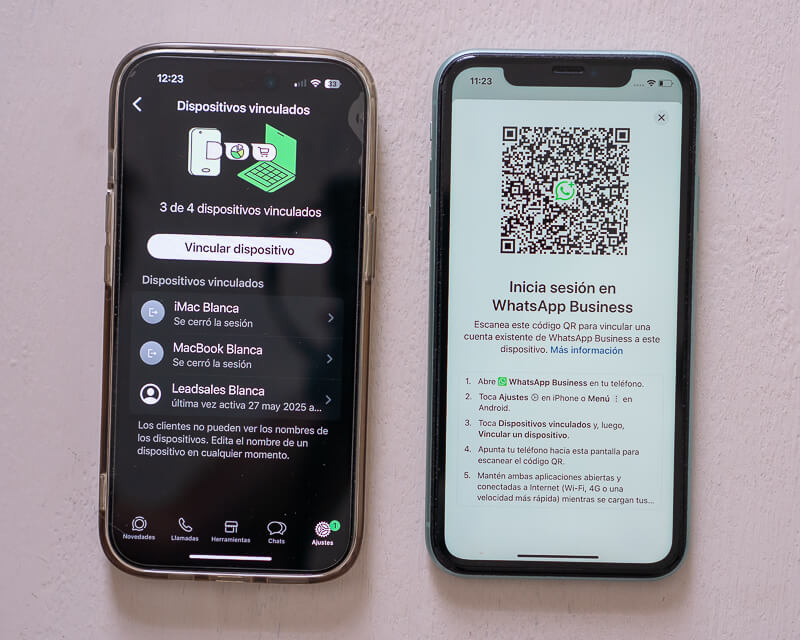 Para configurar WhatsApp Business y usarlo en varios dispositivos, abre la aplicación en tu teléfono, ve a “Dispositivos vinculados” y selecciona “Vincular un dispositivo”. Escanea el código QR desde el nuevo equipo y listo.
