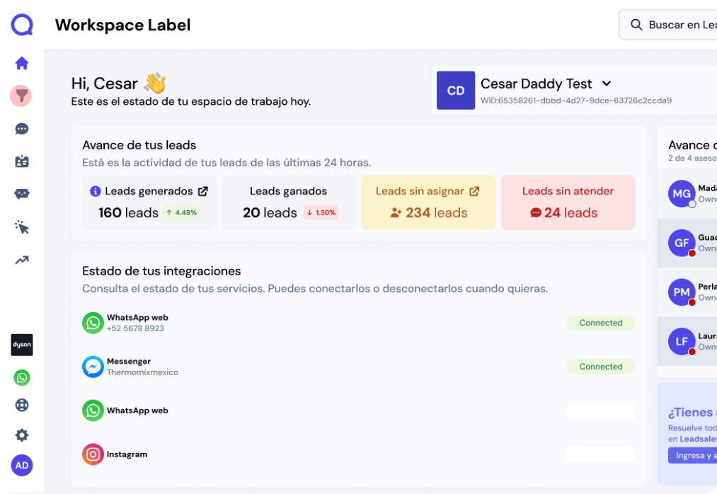 Integrate your WhatsApp line — whether it’s new or the one you’ve always used — and manage it from Leadsales.